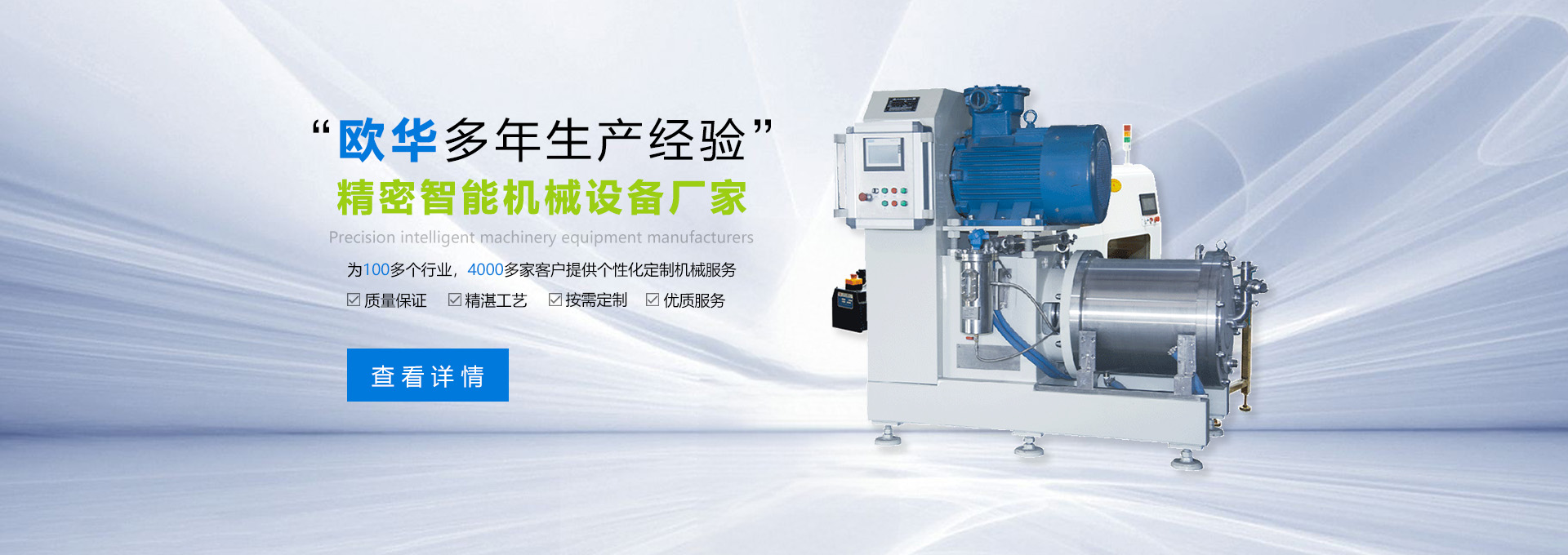 東莞市歐華機(jī)械有限公司,是一家專業(yè)從事濕法研磨、化工分散、成套智能化設(shè)備的生產(chǎn)型企業(yè)。公司兩大生產(chǎn)基地,分別座落于擁有中國(guó)制造業(yè)之都的東莞厚街與中國(guó)重工業(yè)之城的湖南株洲。是集研發(fā)、設(shè)計(jì)、銷售、服務(wù)為一體的高新技術(shù)企業(yè)。